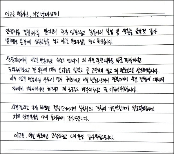 저희 법무법인 온강을 믿고 맡겨주신 의뢰인분의 법무법인 온강 후기입니다.