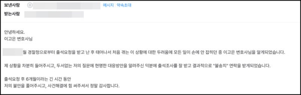 출석조사를 살 받고 결과적으로 "불송치” 연락을 받게되었습니다.