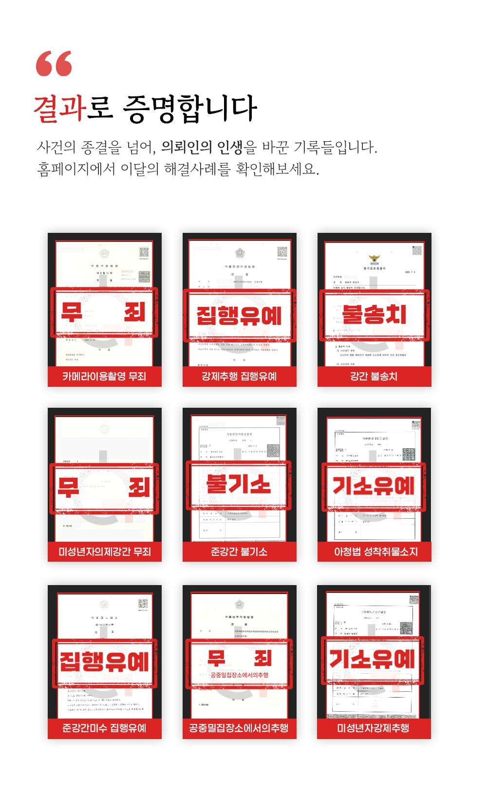 ▲ 위 '불법촬영고소' 기소유예 사례는 실제 법무법인 온강의 해결 사례입니다.