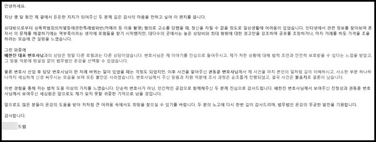 저희 법무법인 온강을 믿고 맡겨주신 의뢰인분의 법무법인 온강 후기입니다.
