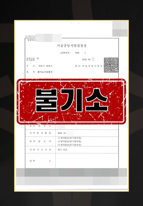 검찰은 온강이 제시한 치밀한 증거들과 정황 분석을 면밀히 검토했습니다. 결국 고소인 진술의 신빙성이 현저히 떨어진다고 판단하여, 준강제추행처벌을 비롯한 준강간, 준유사강간 혐의 전부에 대해 '불기소(혐의없음)' 처분을 내렸습니다.