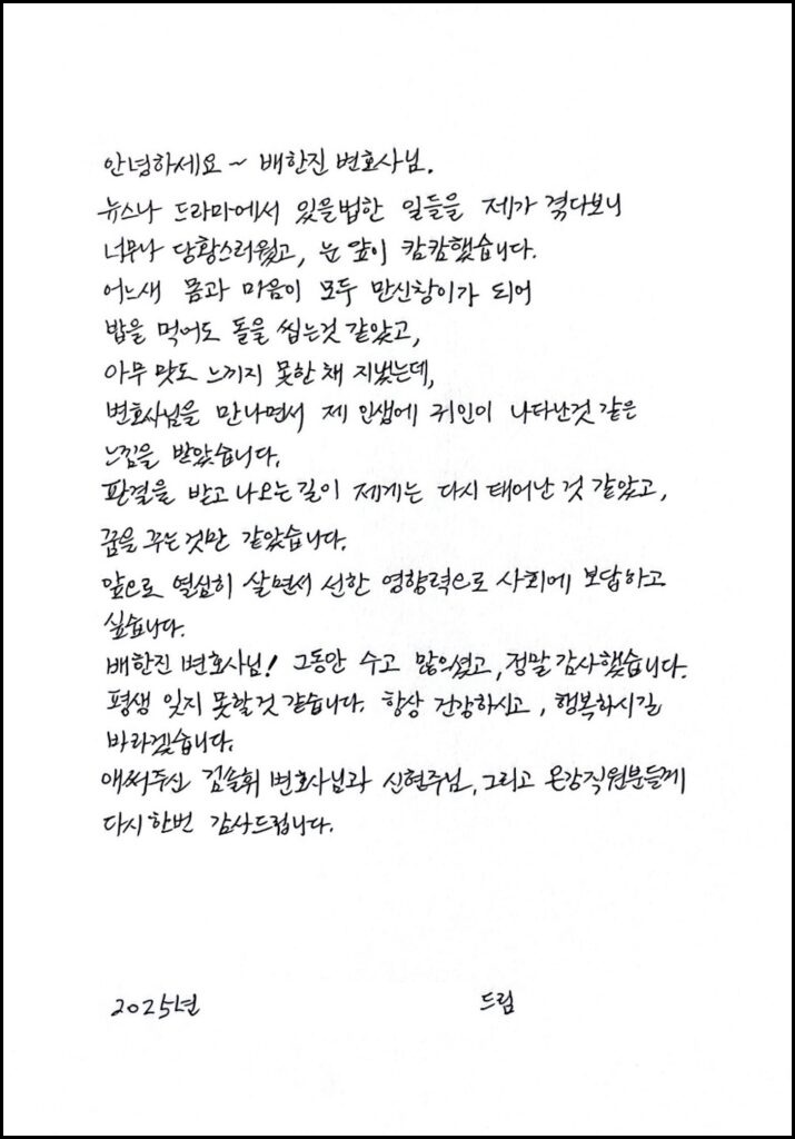 변호사님을 만나면서 제 인생에 귀인이 나타난 것 같은 느낌을 받았습니다.