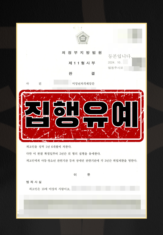 ▲ 위 '미성년자의제강간' 집행유예 사례는 실제 법무법인 온강의 해결 사례입니다.