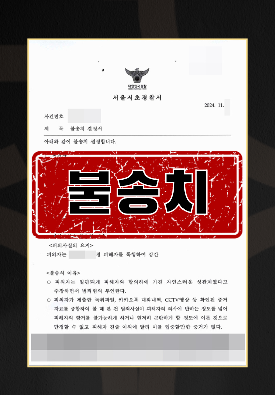 ▲ 위 '강간무혐의 불송치' 사례는 실제 법무법인 온강의 해결 사례입니다.