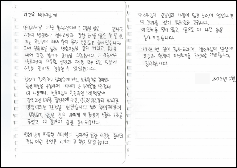 변호사님의 전문성과 마음이 담긴 노력이 없었다면
