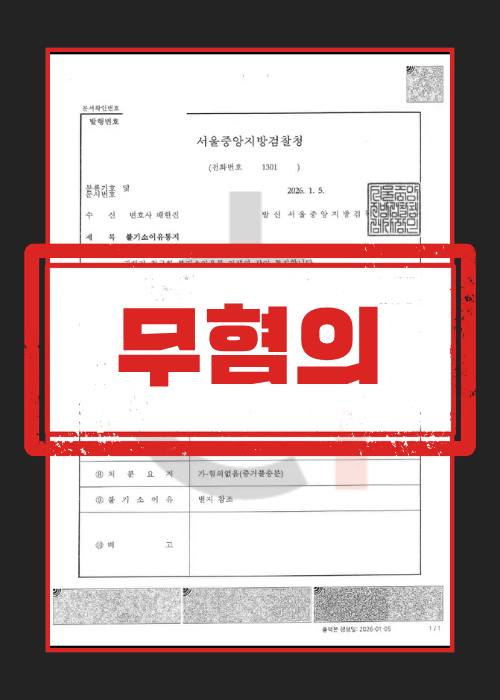 최종적으로 의뢰인은 무혐의(혐의없음) 처분을 받았으며, 억울한 누명을 벗고 소중한 일상으로 복귀할 수 있게 되었습니다.